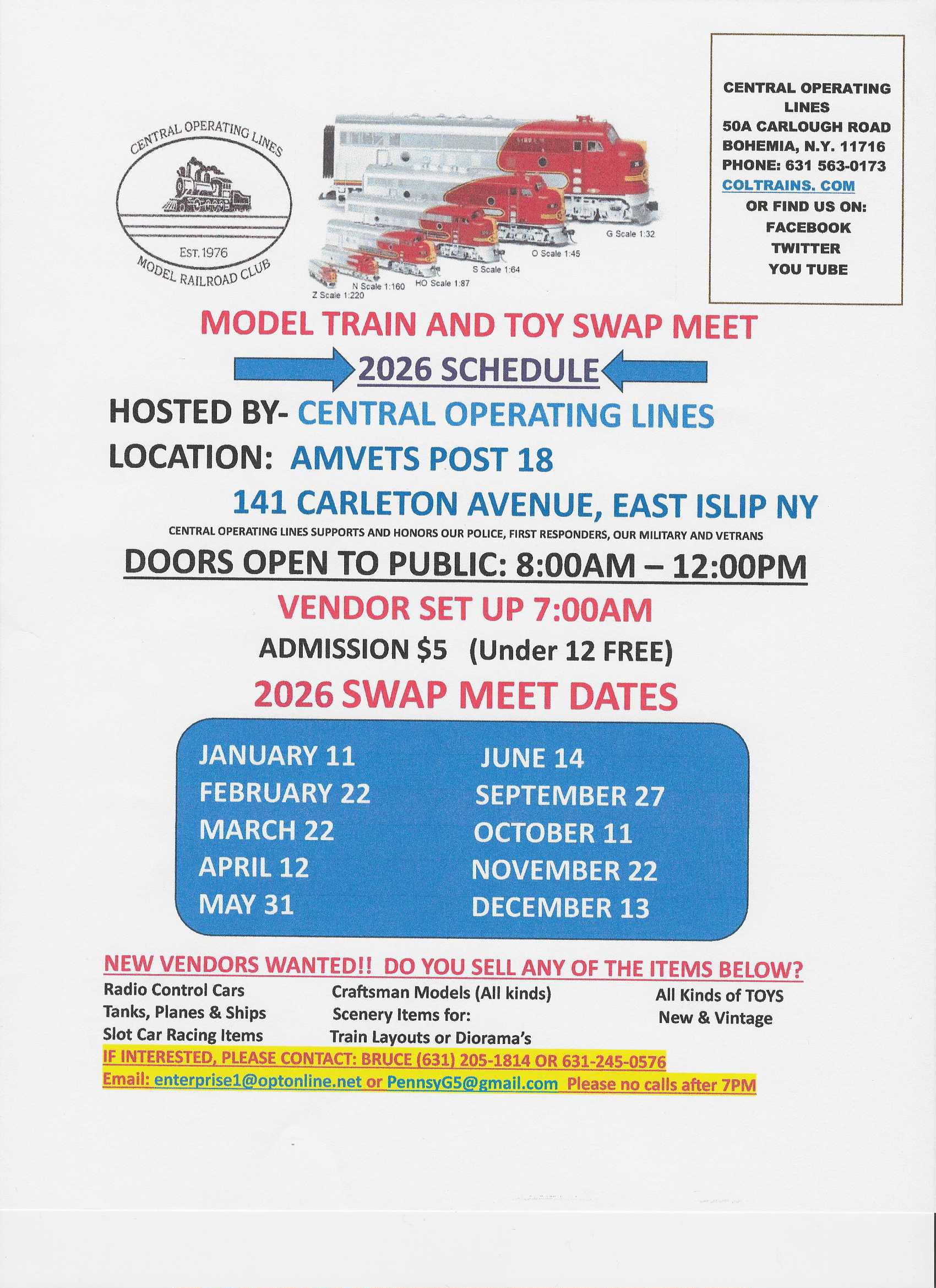 DownloadOur monthly "All Gauge Swap Meets" are held from September through June Annually. Information regarding the dates and times can be found under "More and Swap Meets"